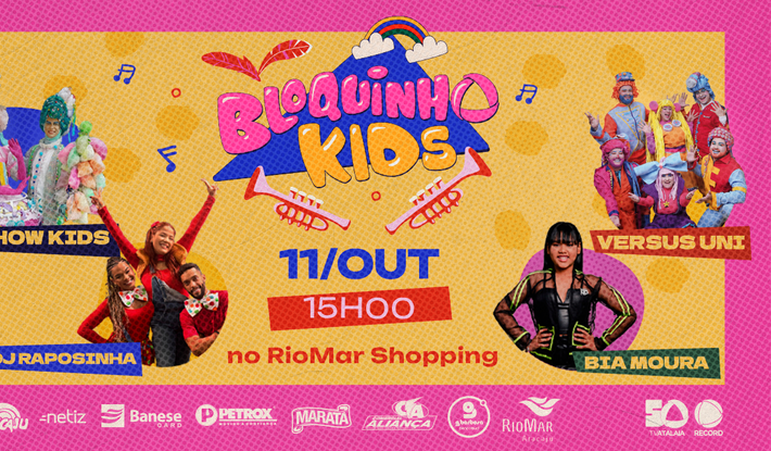 No dia 11 de outubro, a partir das 15h, o estacionamento do RioMar Shopping se transforma em palco para o Bloquinho Kids TV Atalaia 2025, uma festa que une música, brincadeiras e diversão em clima de Dia das Crianças.