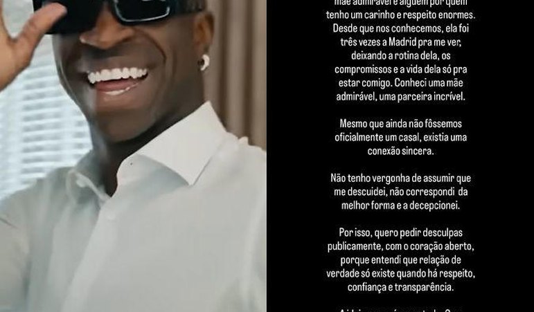 Se desculpou! Vini Jr usou as redes sociais na noite desta quarta-feira, dia 8, para pedir desculpas públicas a Virginia Fonseca, após se envolver na polêmica de troca de mensagens com uma modelo.
