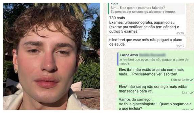 Em uma das conversas, a falsa namorada escreveu que precisava de R$ 730 para fazer “ultrassonografia, papanicolau (exame para verificar se não tem câncer)” e acrescentou: “lembrei que esse mês não paguei o plano de saúde” (veja foto acima).
