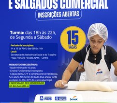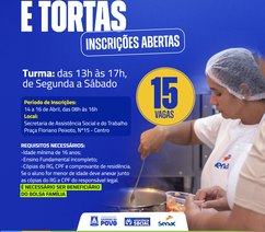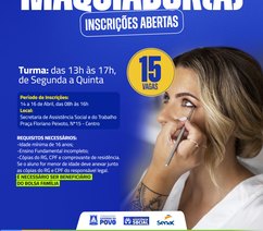 A ação, coordenada pela Secretaria de Assistência Social, em parceria com o Serviço Nacional de Aprendizagem Comercial (Senac), disponibiliza vagas nos cursos de doces e salgados, bolos e tortas, design de sobrancelhas, maquiagem e penteados. As capacitações foram definidas com base em atividades que permitem atuação imediata, seja por meio de trabalho autônomo ou inserção no mercado local.