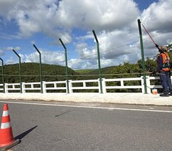 Com 250 metros de extensão, a ponte recebe um reforço completo em sua estrutura de proteção, incluindo a instalação de 500 metros de guarda-corpo de concreto e 513,04 metros de guarda-corpo metálico, além de uma tela de proteção fixada em postes, formando uma barreira física mais alta e resistente.